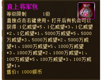 活动奖励:直上将军包,大量银币,聚魂幡,铸魂石,超级历练书,天命宝盒,出师令!