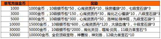 活动内容:活动期间,游戏内开启单笔充值活动,玩家每单笔充值一定金额,即可获得相应的充值奖励。