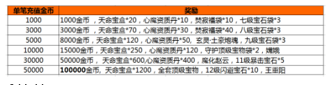 活动内容:活动期间,游戏内开启单笔充值活动,玩家每单笔充值一定金额,即可获得相应的充值奖励。
