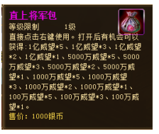 活动奖励:直上将军包,大量银币,聚魂幡,铸魂石,超级历练书,天命宝盒,出师令!