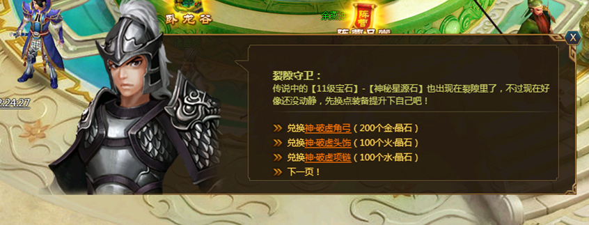 4、装备兑换:找龙城NPC裂隙守卫兑换140级神破虚装备。