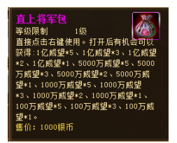 100级纵横江湖包,打开获得1200金币和105级纵横江湖包;
