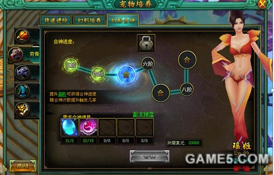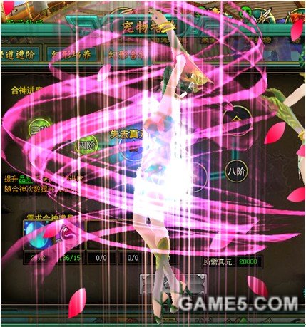宠物或坐骑达到5、7、9阶时即可进行合神。合神后属性会有提升,并且还可以看到仙宠与角色合神的唯美画面。
