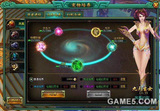 点击培养会消耗铜币或仙宠幻灵石,培养后会出现增长或降低属性,如果玩家对属性不满意可以不点击保存,继续培养,直到满意为止。点击保存后精心培养出的属性就会增加到宠物的身上了。