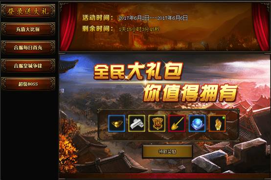 凡在活动期间登录的玩家,即可领取一份丰厚的大礼!