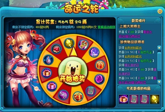 2、每转动一次命运之轮需消耗10两银子(系统自动优先使用绑定银子)