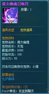 七夕活动期间,游戏右上角将开启“命运之轮”图标,玩家可点击图标进入命运大转盘活动!全新萌宠——小倩神秘登场!谁能得到神的眷顾,骑走御龙行、牵走小倩、赢得至尊大奖,七夕命运之轮,下一个幸运儿就是你!