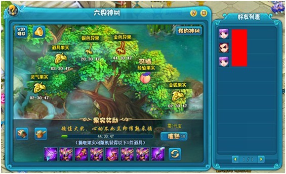 1、经验之果:3小时成熟一次,成熟后玩家可获得一定经验;