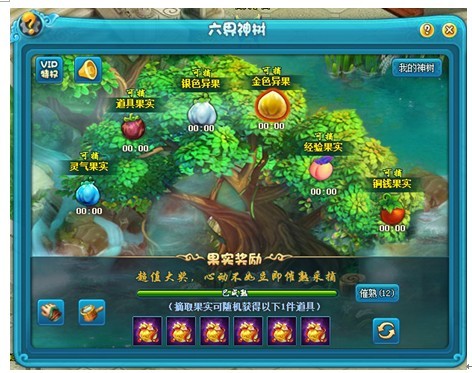 1、经验之果:3小时成熟一次,成熟后玩家可获得一定经验;