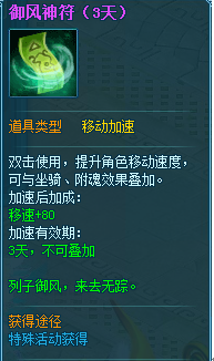 列子御风,来去无踪。还在羡慕其他仙友飞一般的移动速度吗?还在为战场竞技追不上他人而暗自神伤吗?