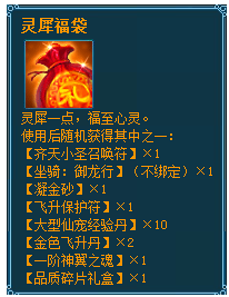 3、 活动期间,每天累计充值达到888元宝,即可领取【一阶神翼之魂】×2、【灵犀福袋】×1;