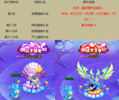【活动内容】:节日期间,跨服鲜花魅力榜隆重登场,赠送鲜花,让你成为全服的焦点!每日鲜花魅力榜前50名的帅哥美女可以获得额外的魅力礼包,第一名的帅哥美女还可额外获得星辰精灵和特殊称号!
