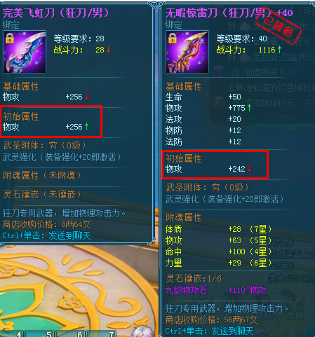 装备浮动提示中新增装备初始属性的展示,玩家可通过这条信息,查看装备未强化前的属性。
