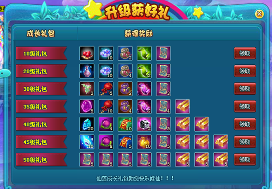 新增【成长礼包】,没有其他条件,更不需要花钱,只要玩家达到指定等级即可领取!奖励丰厚,助你快乐修仙!