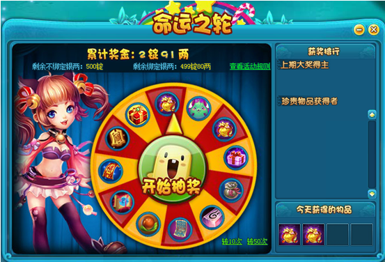 活动期间,打开游戏界面右上角的“命运之轮”图标即可参与活动,当命运之轮旋转结束后,你即可获得指针指向的道具奖励。