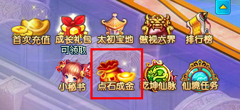 新福利,大放送!游戏隆重推出“点石成金”功能,点金可获得珍贵道具,点金次数由道具兑换所得,从今以后,用不上的道具可以用来“点石成金”啦!