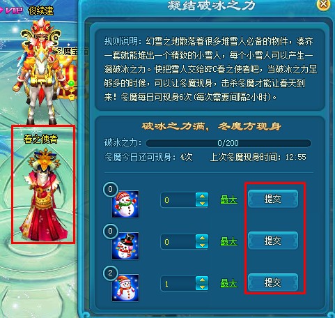 步骤四:破冰之力满啦,BOSS冬魔现身!BOSS难度较大,建议集全服之力击杀!