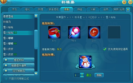 步骤二:堆雪人啦,通过轩辕鼎炼制获得雪人。