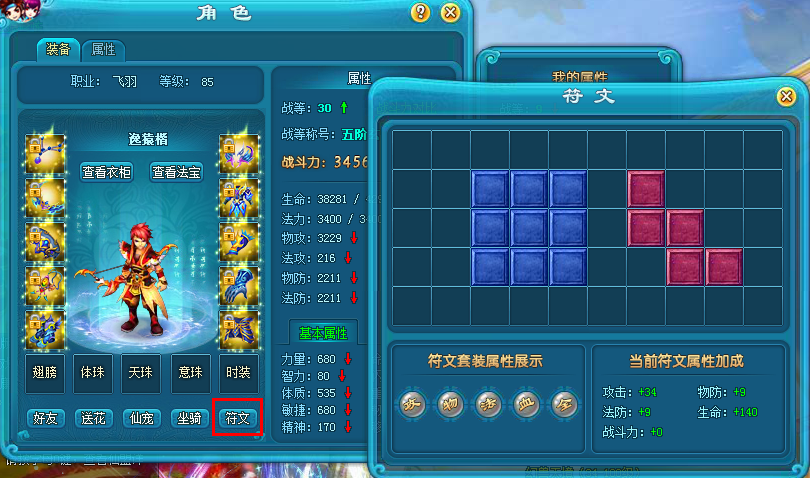 终于可以观摩其他大神的符文排布情况了!在角色观察界面选择符文按钮,即可打开对方的符文观察界面。
