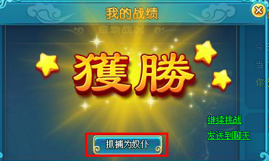 在仙宠竞技界面,点击右侧的挑战按钮,即可发起一起仙宠间的竞技赛。如果你的爱宠得胜归来,恭喜你,可以将对方角色抓捕为奴仆了!