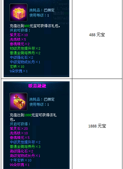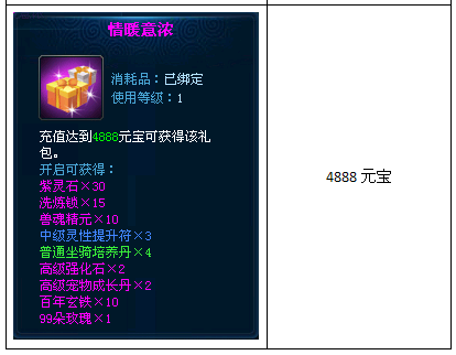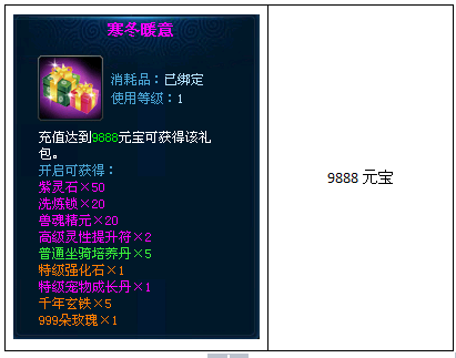 活动内容:活动期间,累积充值可获得对应礼包。