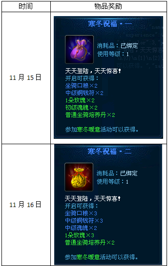 活动内容:活动期间,玩家登陆就能获得相对应天数的奖励。