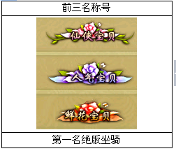 活动内容:活动期间内,前三名玩家可获得鲜花称号,称号有效期为一周;第一名玩家可获得独角兽,有效期为一周。
