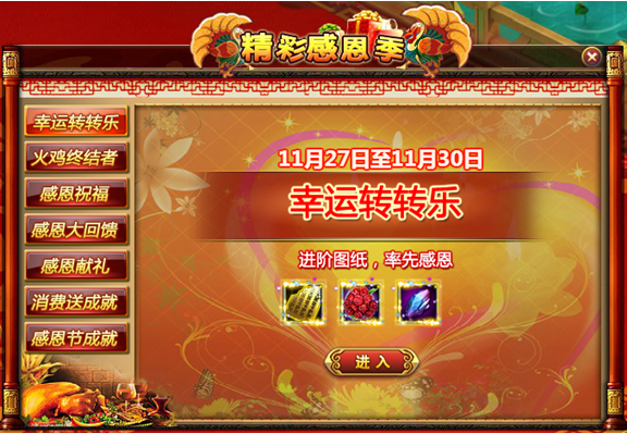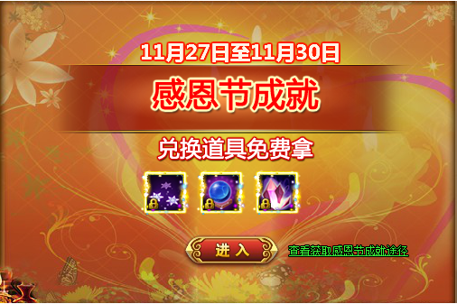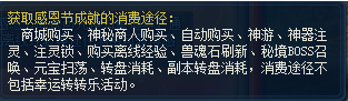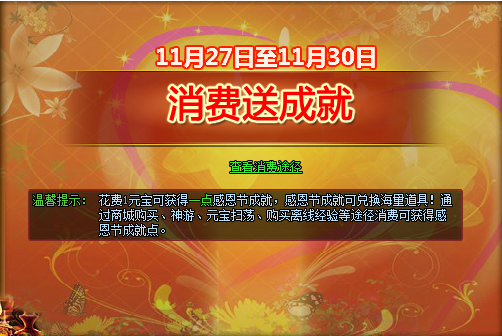 【活动内容】:活动期间通过指定途径消费可获得感恩节成就点