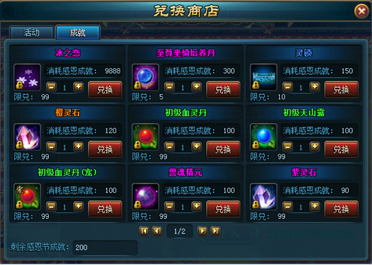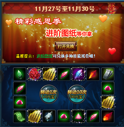 【活动内容】:活动期间在兑换商店使用感恩节成就免费兑换道具