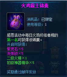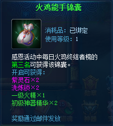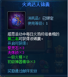3.每日火鸡终结者榜前三名分别获得70、50、30点感恩成就及锦囊