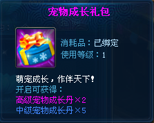 低级宠物口粮×30、中级宠物成长丹×2 |