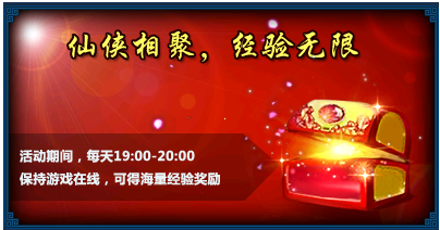 【活动内容】:活动期间每天19:00-20:00。全服40级以上玩家保持游戏在线,每分钟可获得大量经验奖励。
