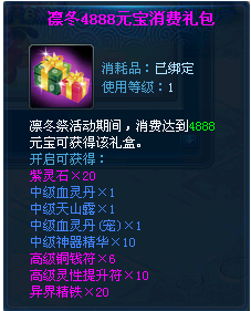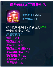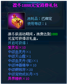 【活动内容】:活动期间,累计消费金额达到一定金额,可获珍贵礼包奖励。
