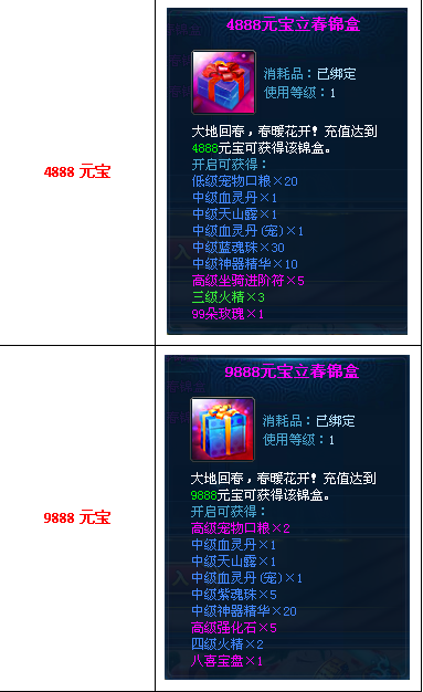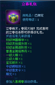 2、每完成一次立春任务即可获得一份立春礼包,每日最多获得10份礼包
