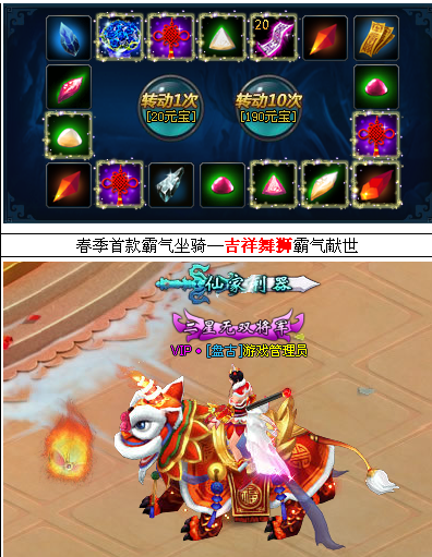 【活动内容】:乐不停,转不停,幸运转转乐,珍稀道具转出来:八喜迎春,多重惊喜等你拿