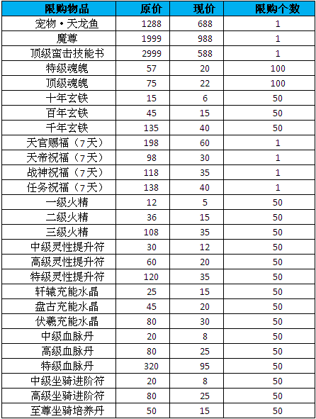 活动对象:全服玩家(注:七天内新开大区除外,即2014年01月28日12:00以后的新开大区不参与此次活动)