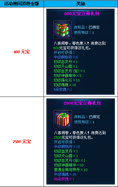 【活动内容】:活动期间,累计消费达到一定金额,可获珍贵礼包奖励。