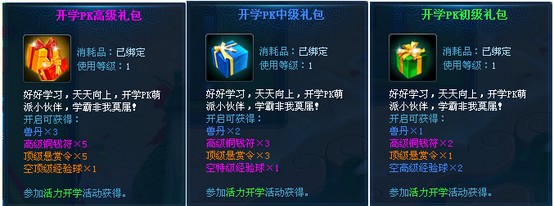 3、每日活动结束时,PK小伙伴前三名可分别获得开学PK高级礼包、开学PK中级礼包和开学PK初级礼包!
