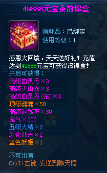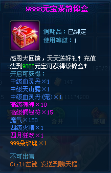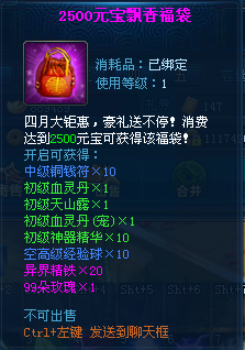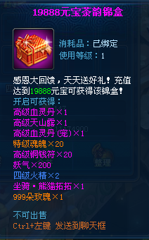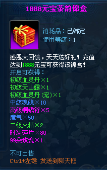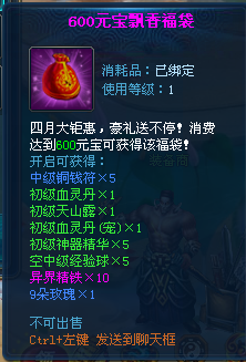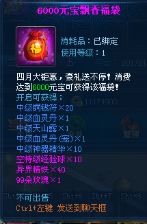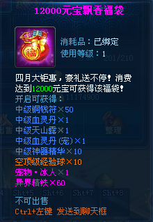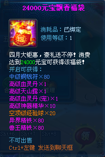 【活动内容】:活动期间累积消费一定数额元宝可以获得相应礼包。