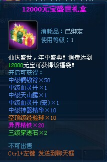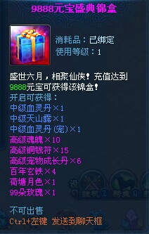 【活动内容】:活动期间累积充值一定数额元宝可以获得相应礼包。