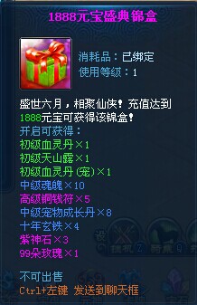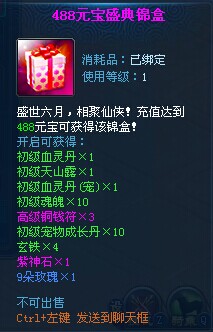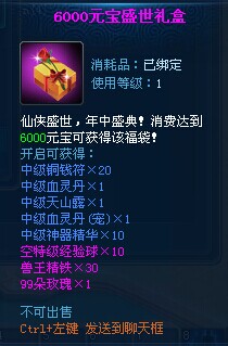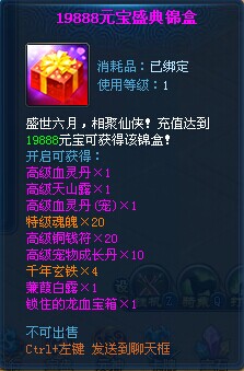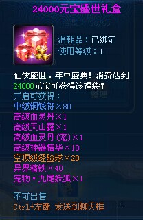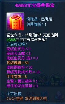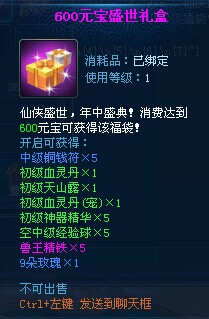 【活动内容】:活动期间累积消费一定数额元宝可以获得相应礼包。