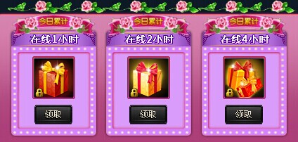 【活动内容】:每日玩家累积在线时间为1小时、2小时和4小时,可获得相对应的奖励。