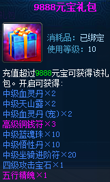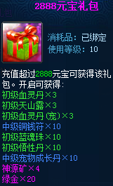 2888元宝礼包x1 夫妻恩爱礼包x10 百年神源x8 |