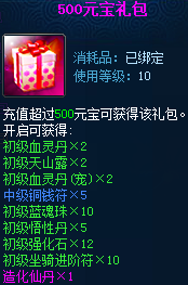 500元宝礼包x1 夫妻恩爱礼包x5 百年神源x4 |