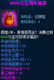 紫神石x6 洗炼锁x25 六级宝石礼包x2 大型火精礼包x1 传承符x2 |