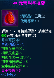 紫灵石x20 洗炼锁x15 五级宝石礼包x2 中型火精礼包x1 复活珠x6 |
