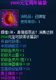 紫灵石x5 洗炼锁x5 四级宝石礼包x2 小型火精礼包x1 复活珠x2 |