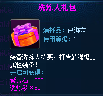 【活动内容】:活动期间充值任意金额即可获得洗炼大礼包。