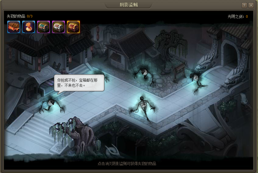 1. 每局游戏都会出现5只阴影盗贼,每成功消灭1只盗贼,就能找回1个失窃的物品