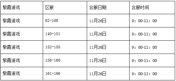 为了提供更好的游戏体验,2017年11月26日9:00-11:00合服对以下区服进行合服操作。在此期间游戏将暂时关闭登录,合服活动合服后开启,合服完成后恢复登录。